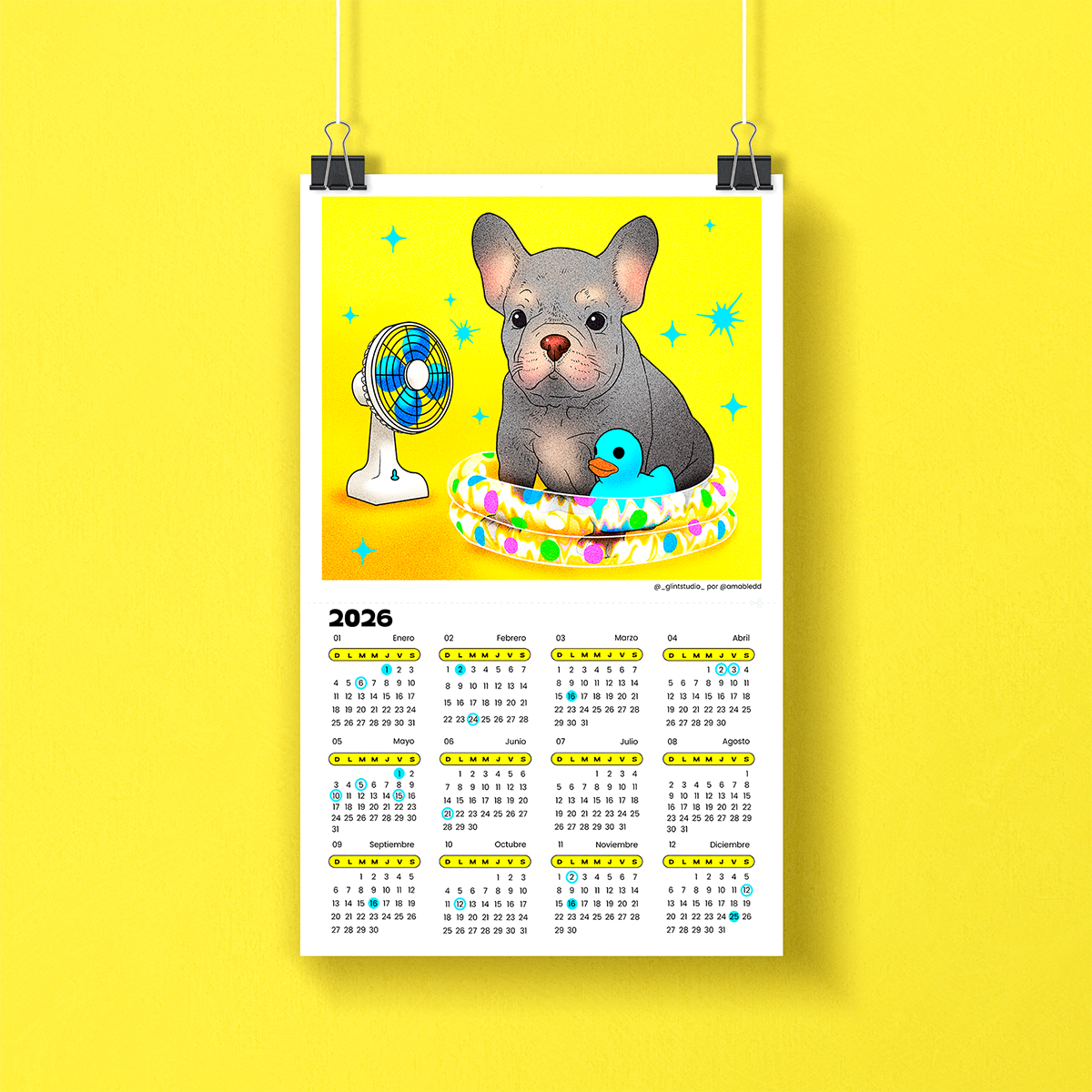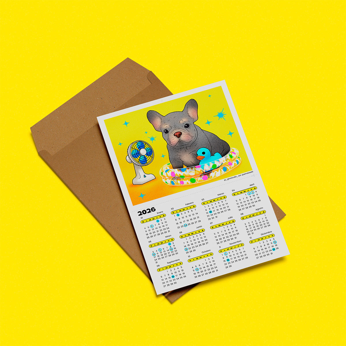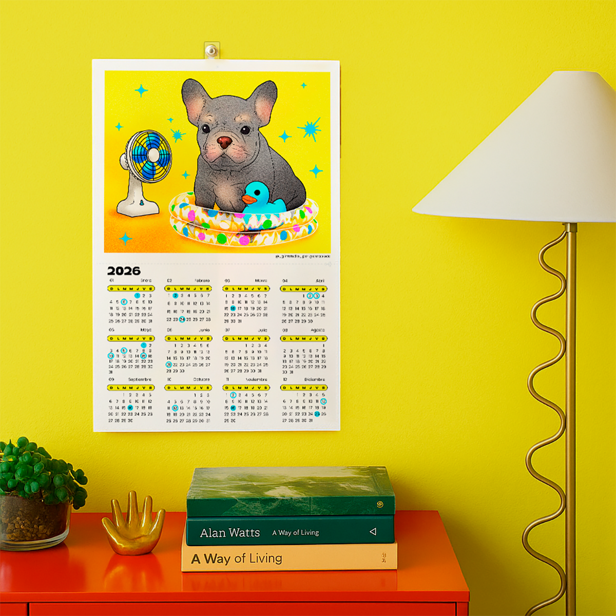 El calendario más flojito del año. Goyo, el bulldog francés que vive para echar la siesta, te acompañará todo el año recordándote que no todo en la vida es productividad: a veces solo hay que echarse y disfrutar del fresco.